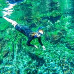 Caso o visitante queira, é permitido retirar o colete e descer em apneia (mergulho pretendendo a respiração) até um pouco mais próximo da nascente do Rio.
