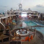 Piscinas externas e internas: Na aérea da piscina também são oferecidas atividades pela equipe de entretenimento do navio (competições, danças, aulas, etc).